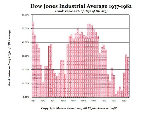 Der Dow Jones hatte seine Anpassung durchgeführt, als das Economic Confidence Model von staatlichen Vermögenswerten zu privaten Vermögenswerten umschlug – nicht vorher. Das ist nicht irgendwelches Zeug, das durch persönliche Meinung ermittelt werden kann. Niemand kann Prognosen treffen, indem er sich nur Fundamentaldaten anschaut. Die Märkte reagieren aufeinander und sind miteinander vernetzt. Das ist der Grund, warum die Mehrheit immer falsch liegen muss, wenn die Gesellschaft versucht, alles auf einen einzigen Grund zurückzuführen.
